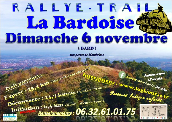 La MJC "Loisirs au village de Bard organise sa 6ème édition du Rallye-Trail "La Bardoise". Le village de BARD, avec ses reliefs, ses chemins, est idéal à la réalisation d'une course nature. Le Rallye-Trail est un format de course adapté à tous les coureurs, du novice au plus chevronné avec 3 parcours avec des sections chronométrées et des sections de liaison à allure libre. Le chronométrage se fait avec des doigts électroniques, les mêmes utilisés lors des raids multisports et des courses d'orientation. Le système est simple, vous validez vous-même votre départ au début d’une spéciale en introduisant le doigt électronique dans le boitier et validez votre arrivée de la même manière en fin de spéciale pour stopper le chrono. Un "BIP" retentit pour confirmer votre validation. Les boitiers seront fixés en évidence ou des contrôleurs seront postés à chaque boitier d'arrivée. Pendant les liaisons, on peut attendre ses compagnons de course ou sa famille. Pour terminer cette belle matinée de convivialité, nous offrons un repas composé de bons produits locaux.